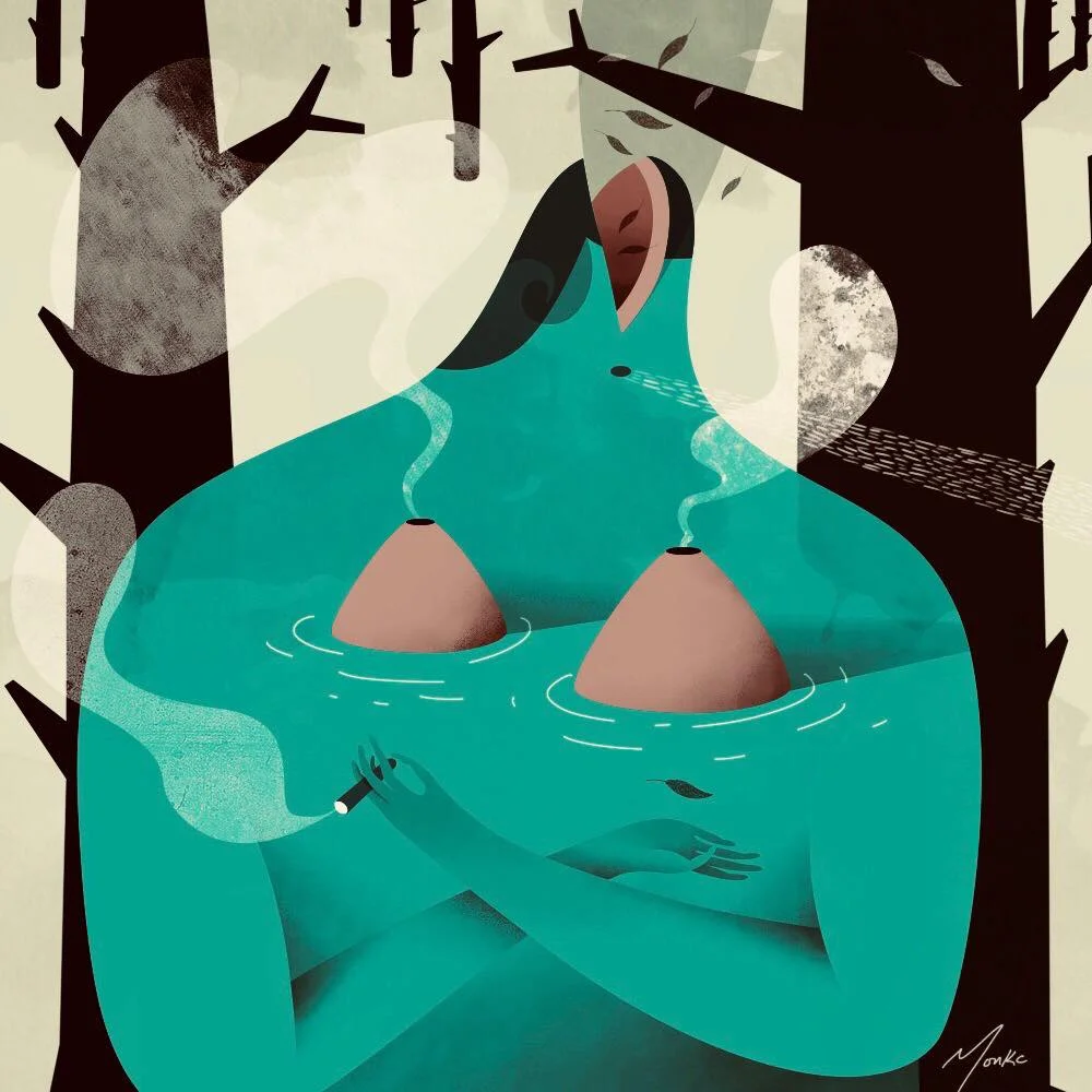 Although I am still not ready to talk about my experience in full and explain all the mysterious things that were shown to me, the experience was so powerful that I did want to see what ayahuasca was like for other people that had also tried the remedy (because now I see it as a remedy a not really as a drug). So at Voxpluma we decided to talk to two of our friends who had recently come into contact with the remedy and were willing to share testimonials of their own experience. Our in-house illustrator MONKCdecided to create for us some beautiful illustrations that capture these intimate testimonials of self-discovery.